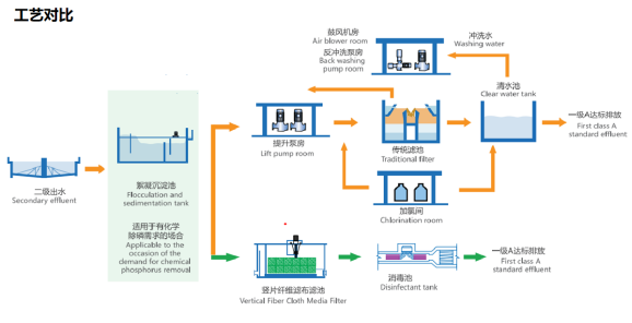 JPF 豎片纖維濾布濾池憑借其卓越的性能,在眾多領(lǐng)域得到了廣泛應(yīng)用。工藝應(yīng)用于沉淀,澄清,氣浮工藝后的過(guò)濾:無(wú)論是城市污水處理廠的提標(biāo)改造,還是工業(yè)廢水的深度處理;無(wú)論是大型市政污水處理項(xiàng)目,還是小型村鎮(zhèn)式污水處理,無(wú)論是原水處理,還是地表水凈化,無(wú)論是膜工藝前處理還是循環(huán)冷卻水處理,JPF 豎片纖維濾布濾池都能大顯身手,為各類污水的凈化處理提供可靠保障。